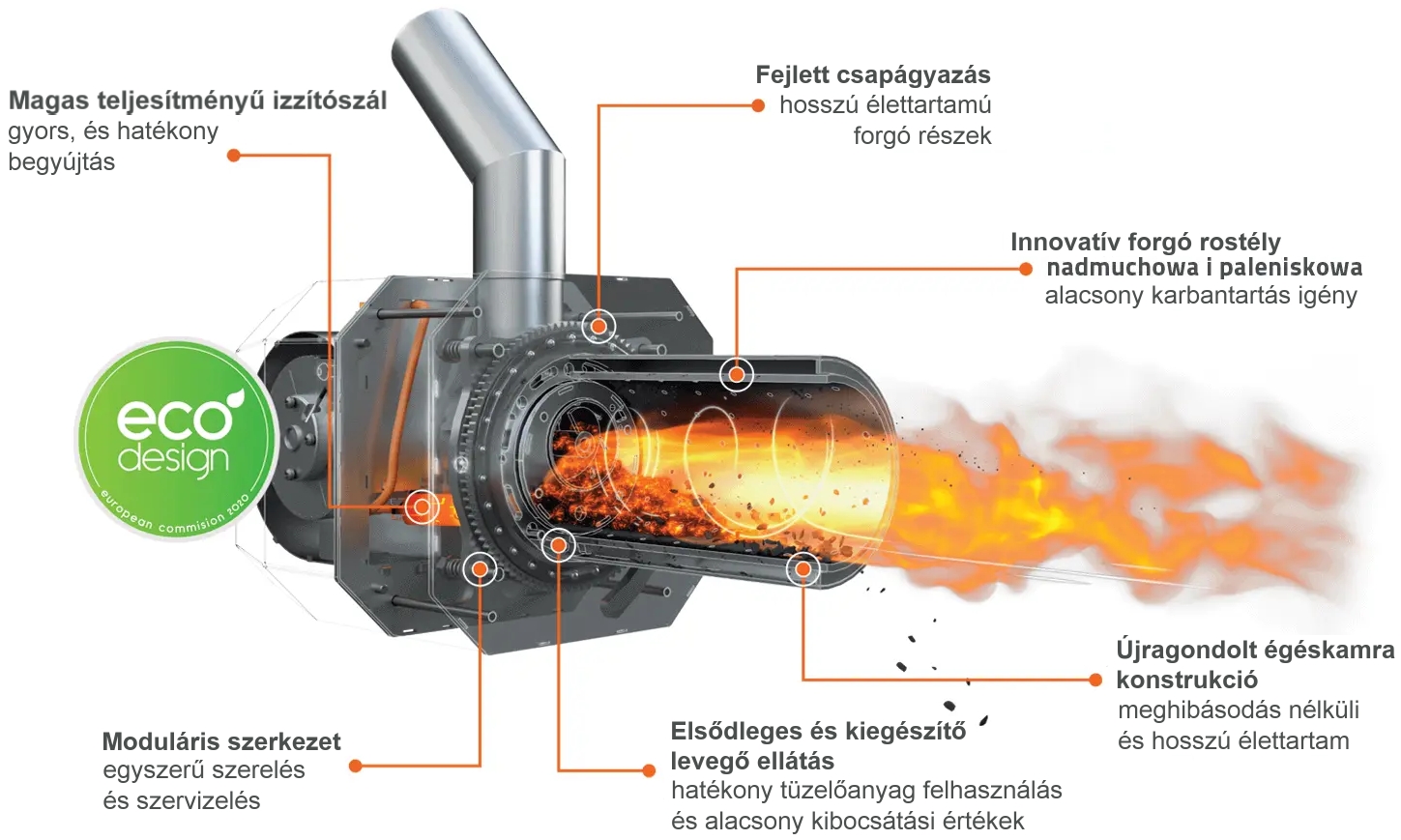 Olyan új generációs megoldás, amely lehetővé teszi az 1-32mm szemcseméretű, laza és szemcsés tüzelőanyagok használatát.