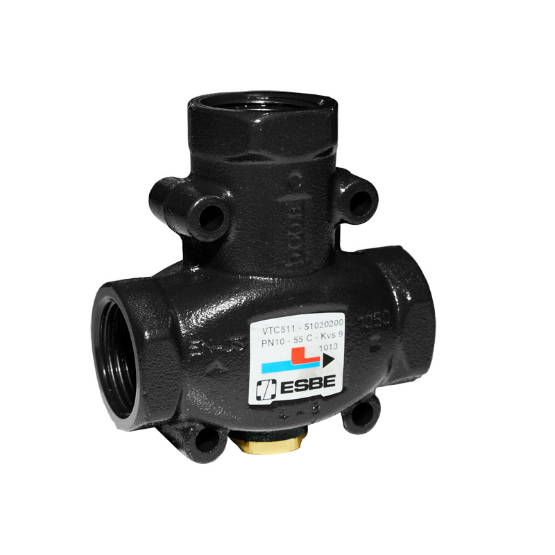 1/ segédenergia nélküli, termikus keverőszelep, mint pl. az ESBE VTC 511 55C-os termosztáttal: