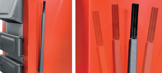 - Egyes típusok elérhetőek kazán rostélyt mozgató karral.