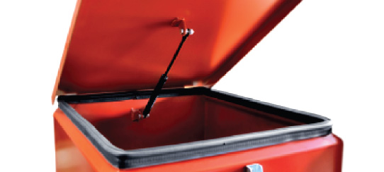 - Az automata adagolós kazán tároló tartály fedelének nyitását és kitámasztását egy gáz teleszkóp könnyíti meg.