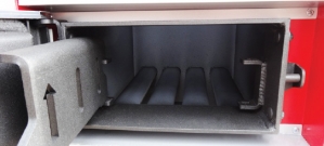 - A kazán ajtók speciális ásványgyapot tömítéssel vannak ellátva, melyek biztosítják a hőveszteség csökkentését és minimalizálják a kazán ajtók felületi hőmérsékletét. A vegyestüzelésű kazán kiegészítő tűzterének rácsa véd a nem kívánt parázs kiömléstől.